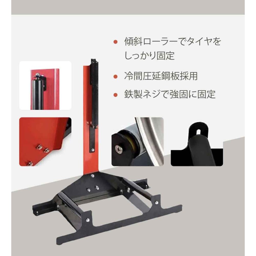 3点支持のローラー構造により、タイヤをスムーズに回転させながら作業でき、